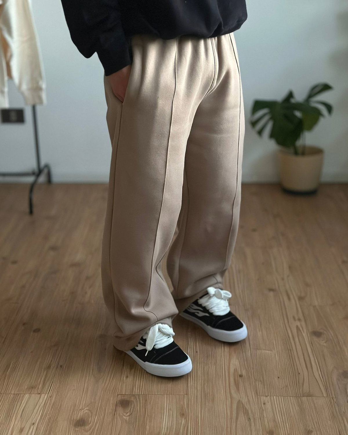Jogging unisex de frisa gruesa con líneas frontales. Corte baggy.