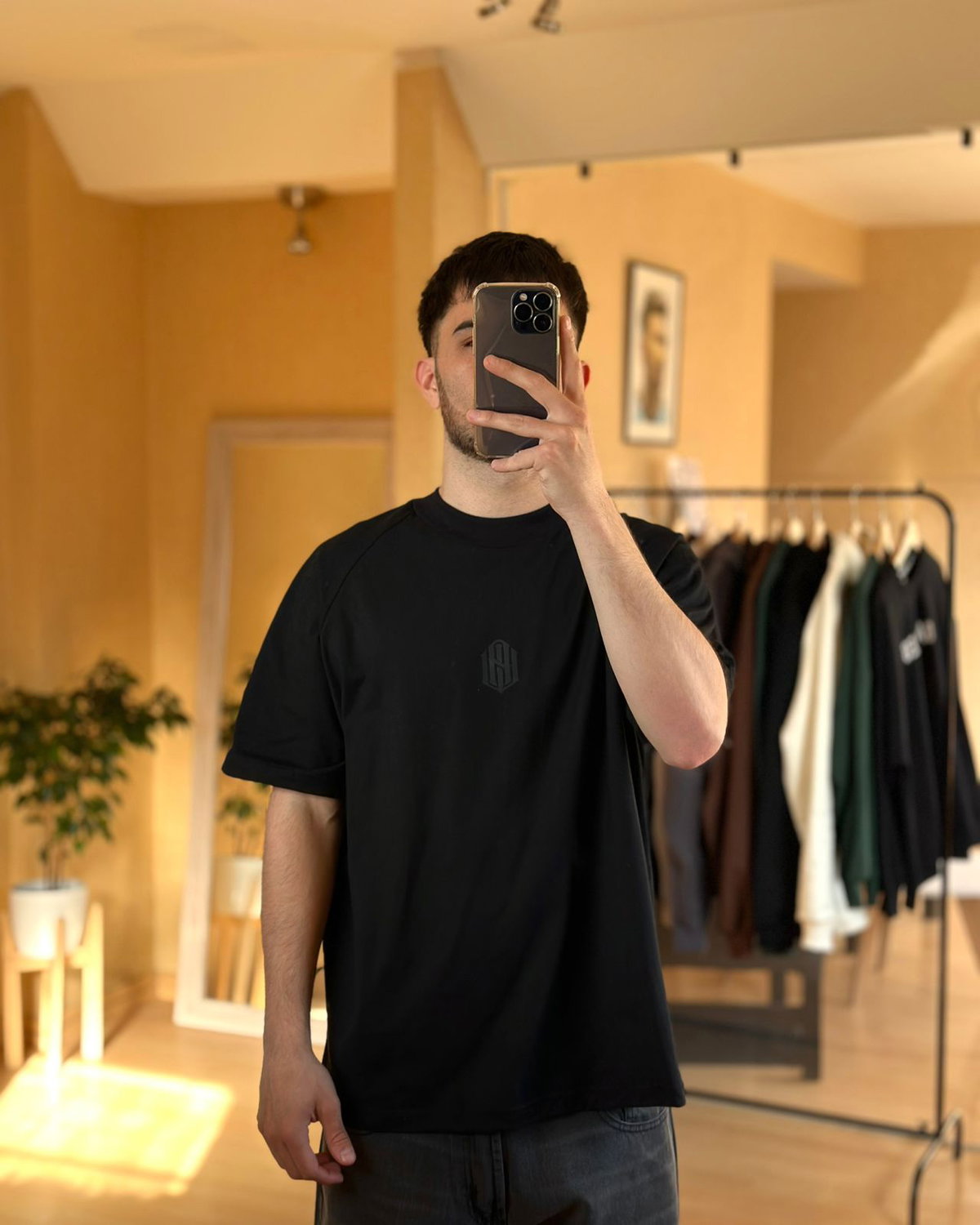 Remera de algodón peinado con cuello en ribb y costuras dobles reforzadas.