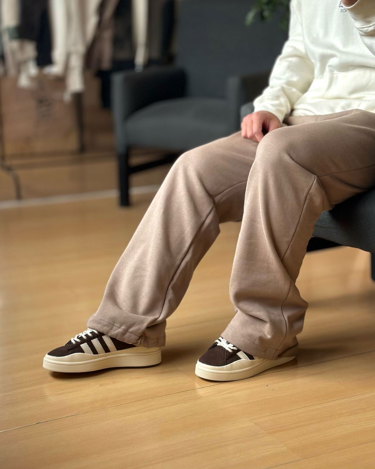 Jogging unisex de frisa con elástico regulable en botamanga. Detalle bordado en el bolsillo.