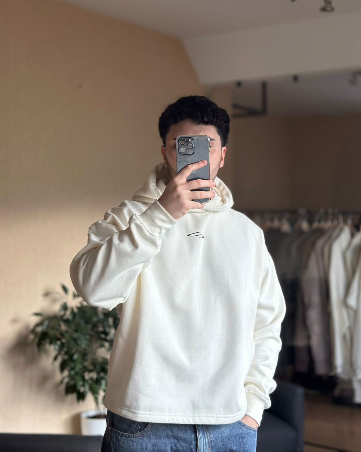 Buzo boxy de frisa premium con puños y cintura en ribb.