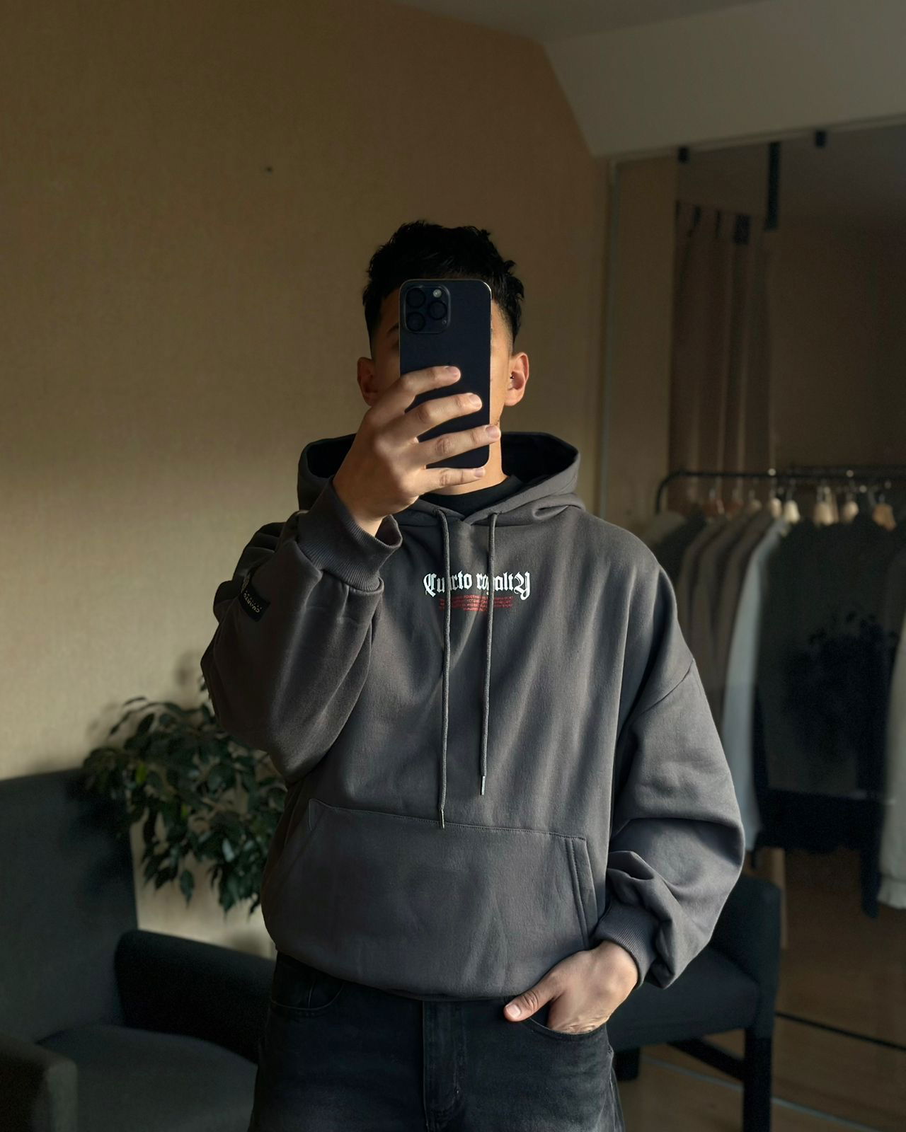 Buzo boxy de frisa premium con puños y cintura en ribb.