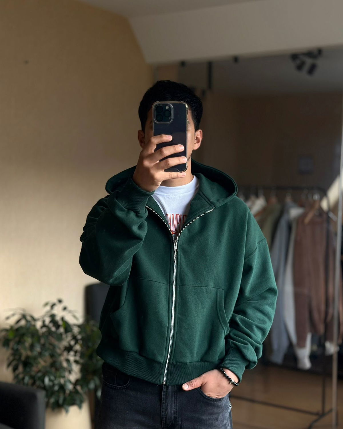 Bordado a tono en lado izquierdo y capucha doble tela.