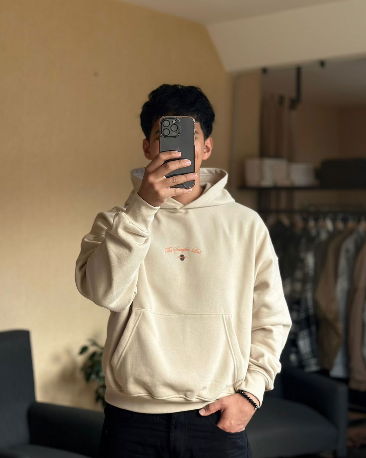Buzo boxy de frisa premium con puños y cintura en ribb.