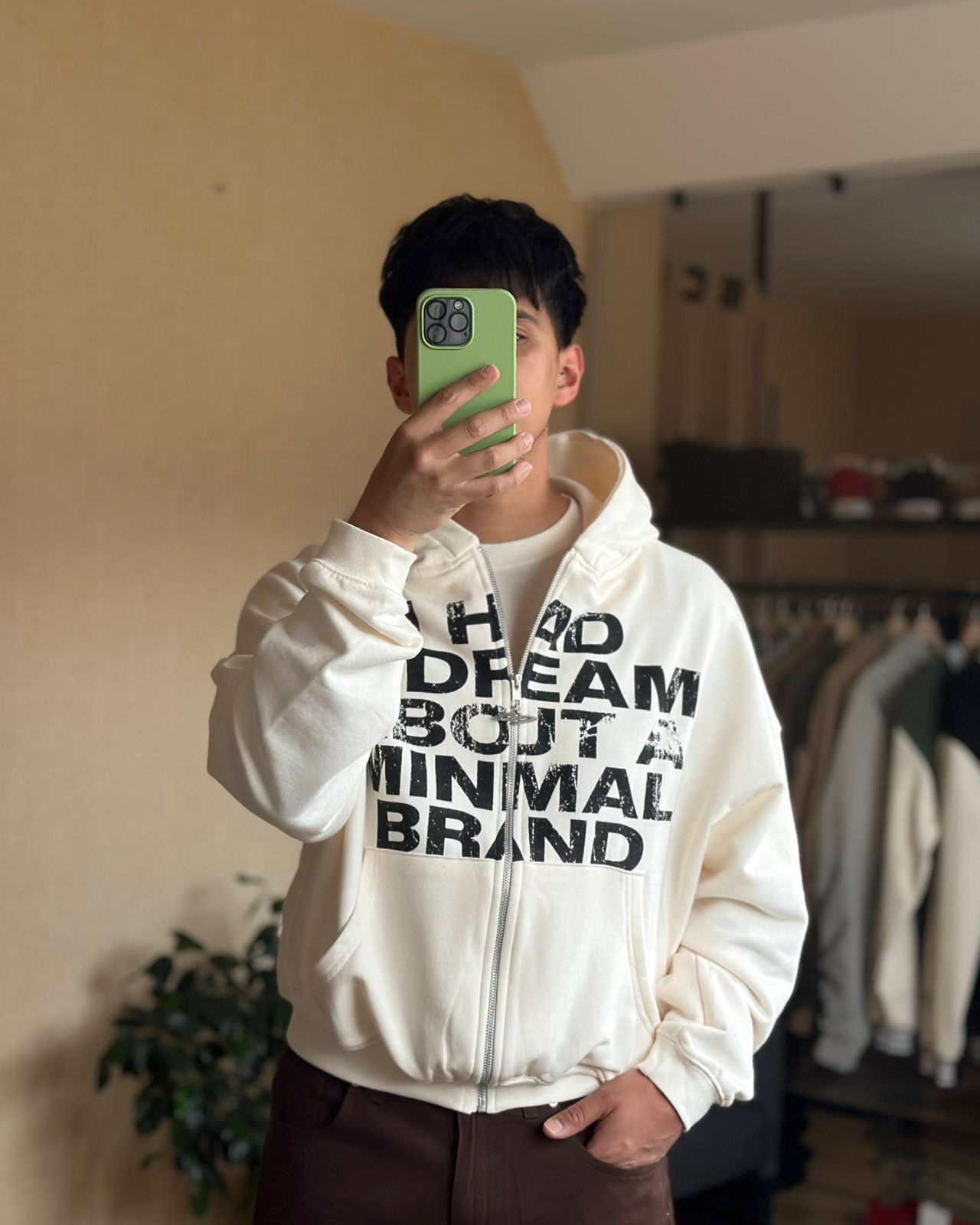 Campera zip de rustico pesado corte boxy. Estampa en serigrafia al agua de alta calidad.