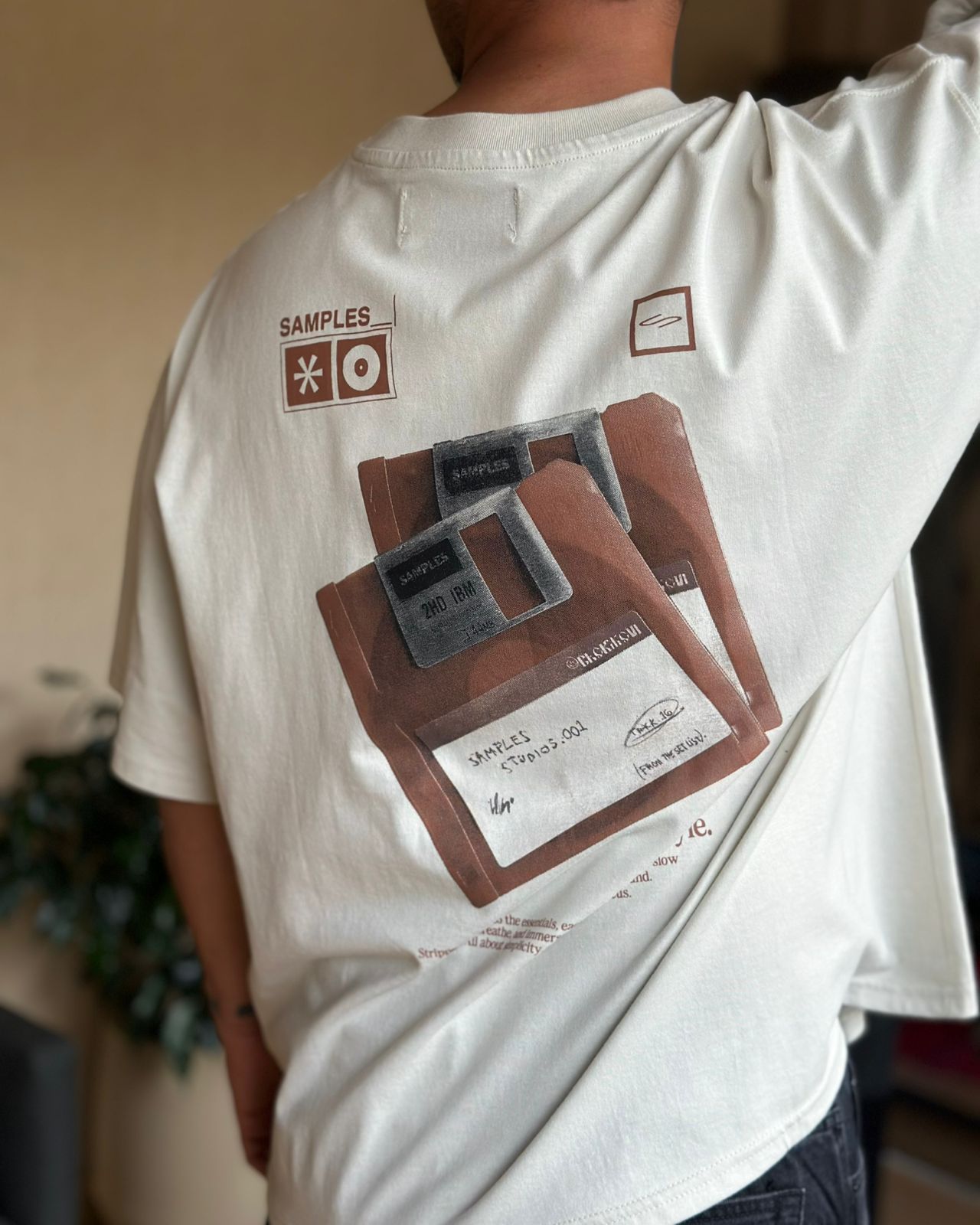 Remera de algodón peinado con cuello en ribb y costuras dobles reforzadas. Estampado en frente y espalda en serigrafia de alta densidad. Corte boxy.