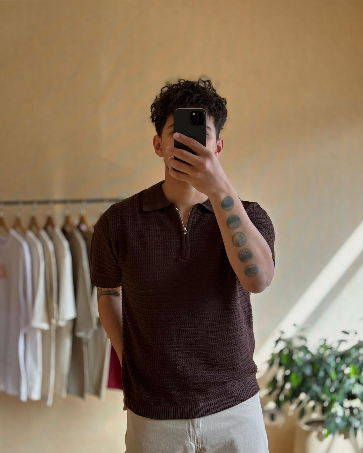 Chomba con cierre importada tejida, tela pesada. Corte oversize.