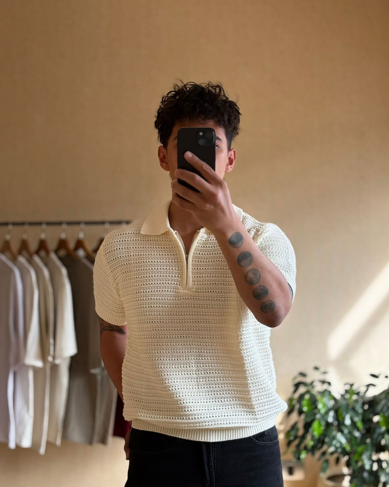 Chomba con cierre importada tejida, tela pesada. Corte oversize.