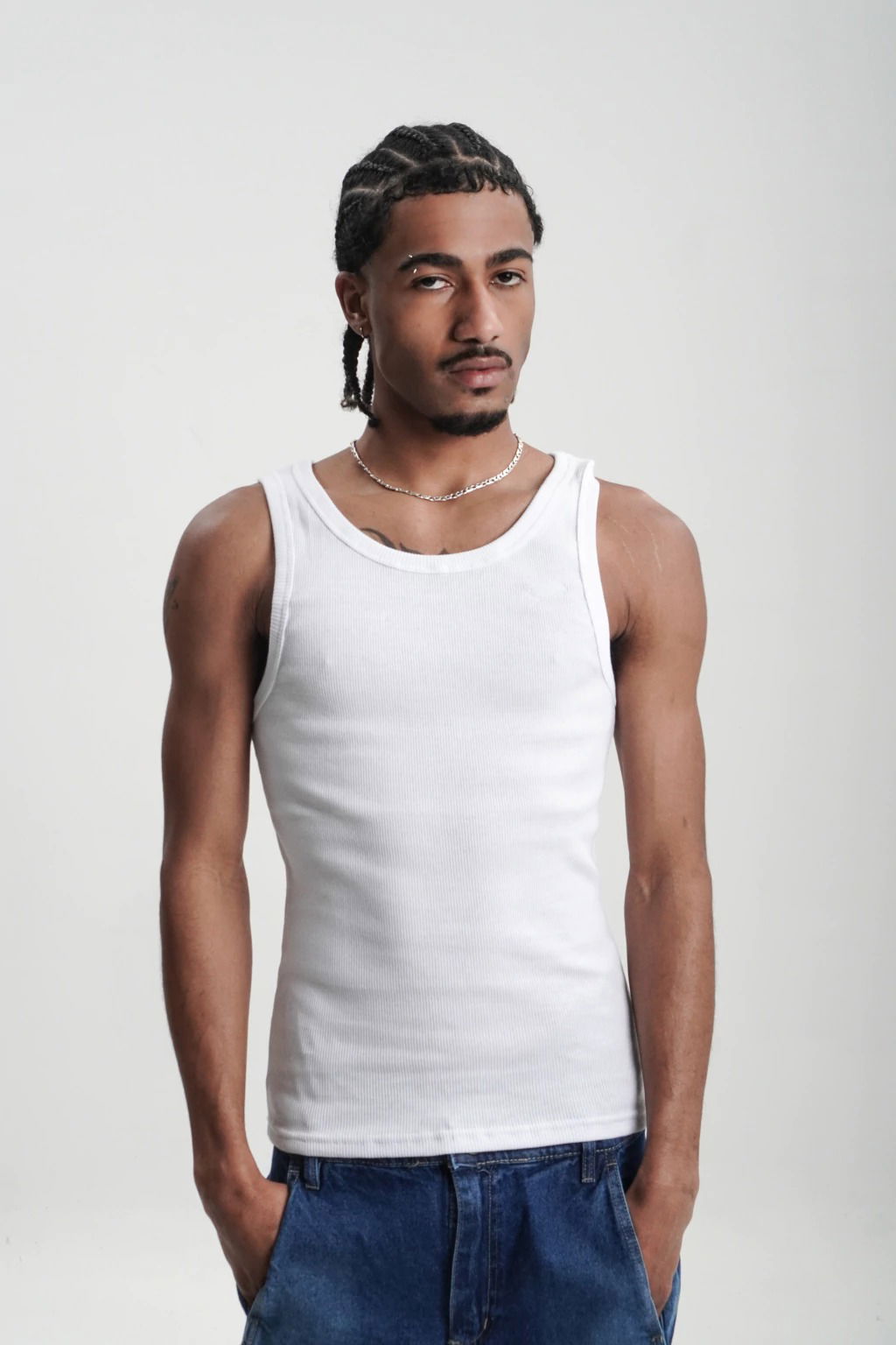 Musculosa de morley de algodón elastizado con bordado a tono en frente. Corte slim fit.