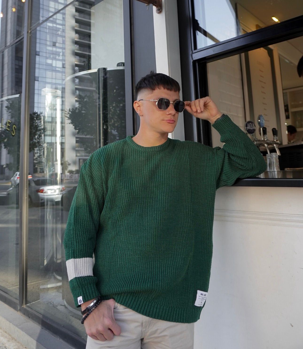 Sweater cuello redondo tejido en hilado importado. Corte oversize.