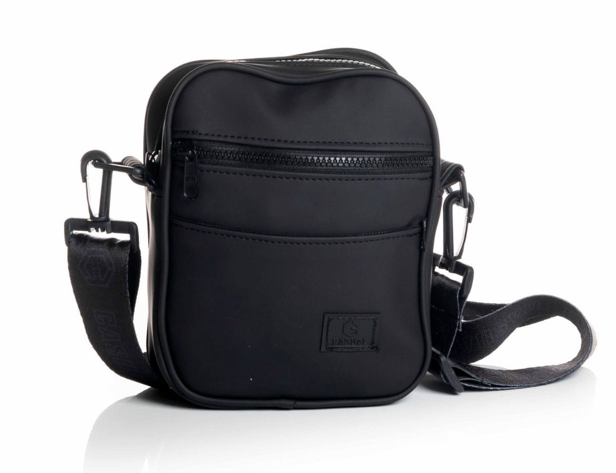 Morral de ecocuero de 3 bolsillos con cinta regulable.