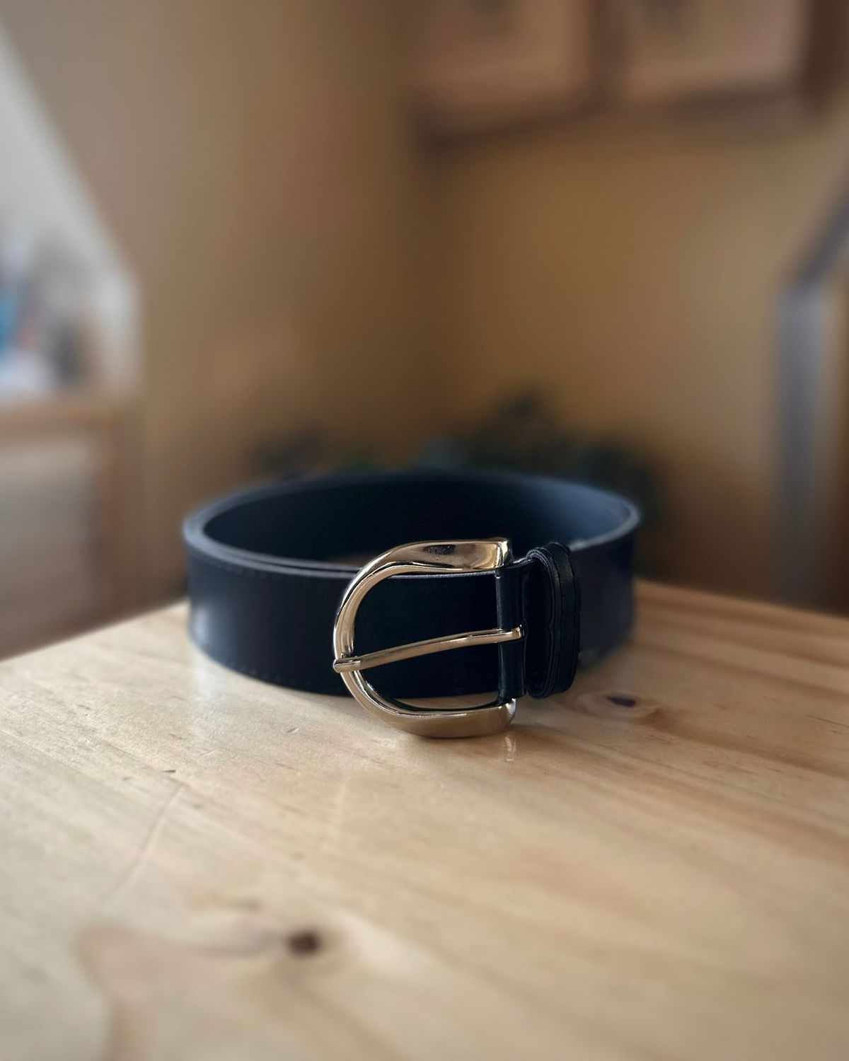 Cinto de ecocuero con hebilla metálica color plata.