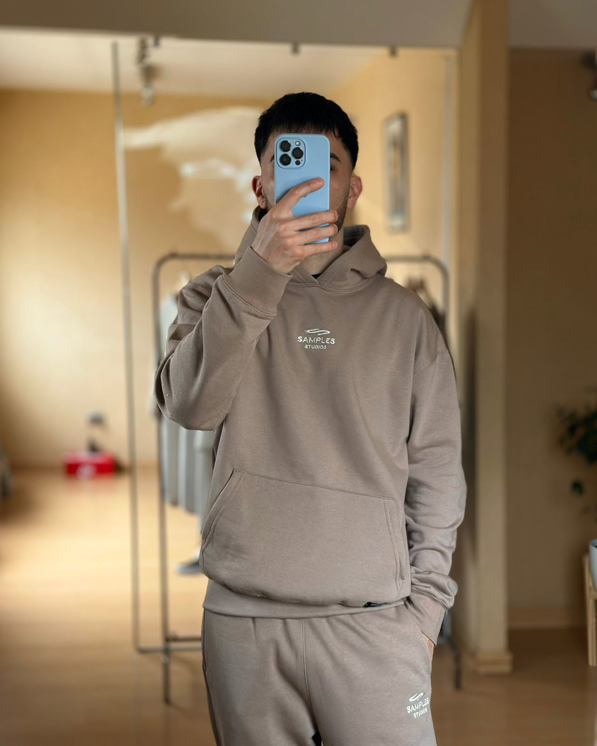 Buzo oversize unisex de frisa premium con puños y cintura en ribb. Bordado en pecho y capucha.
