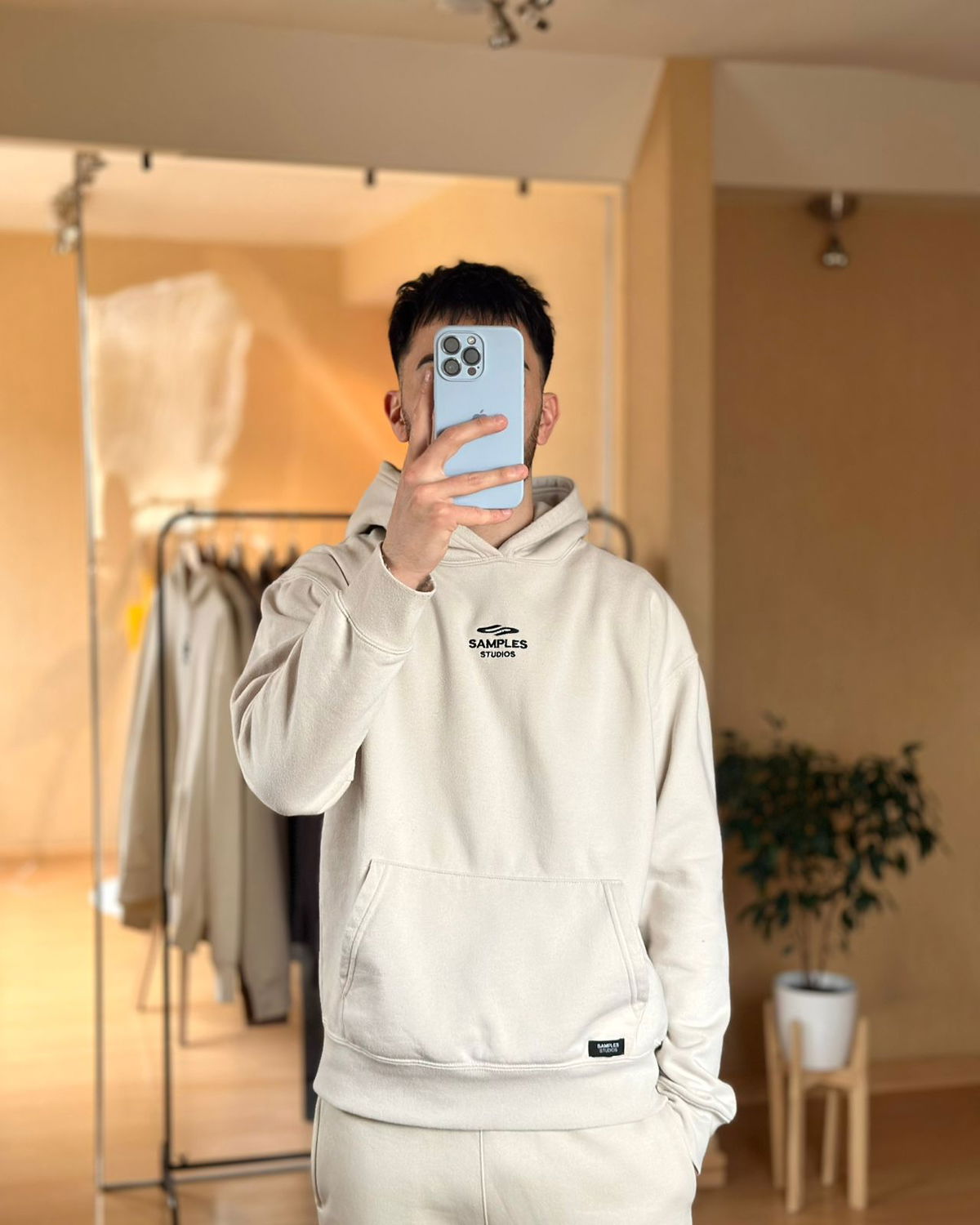 Buzo oversize unisex de frisa premium con puños y cintura en ribb. Bordado en pecho y capucha.