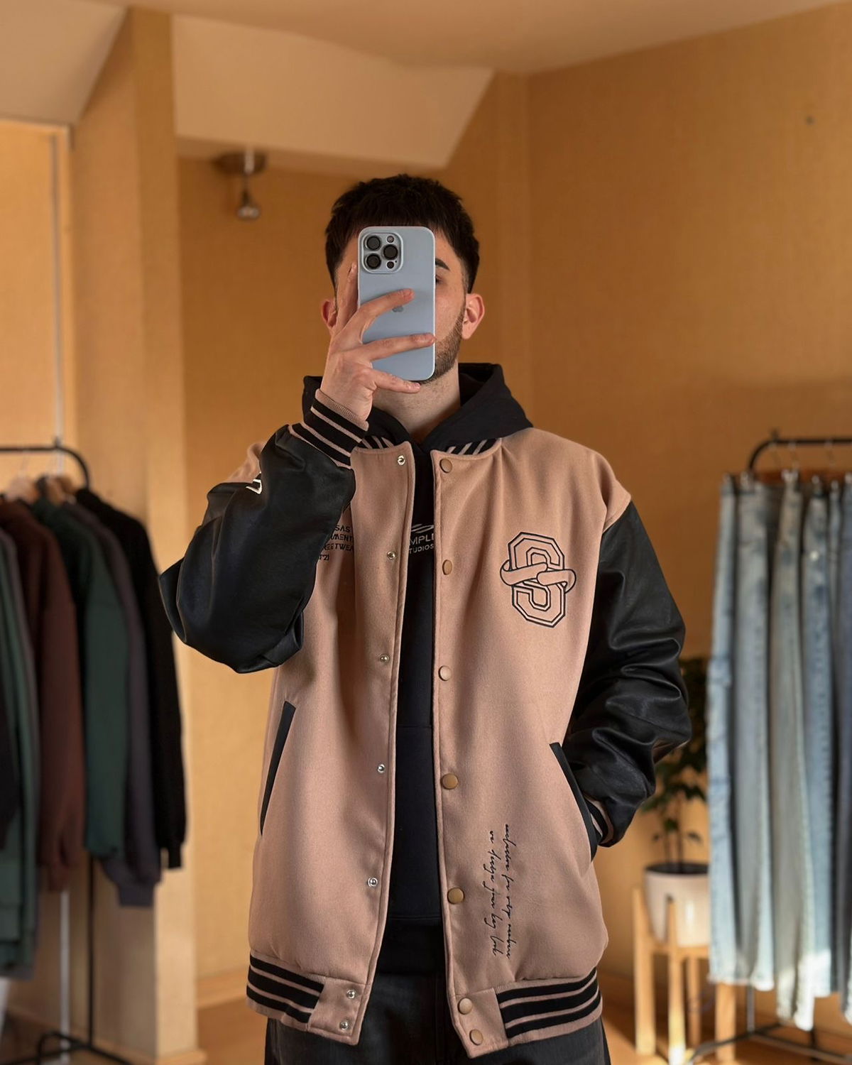 Bordado en espalda, mangas y frente. Corte oversize.