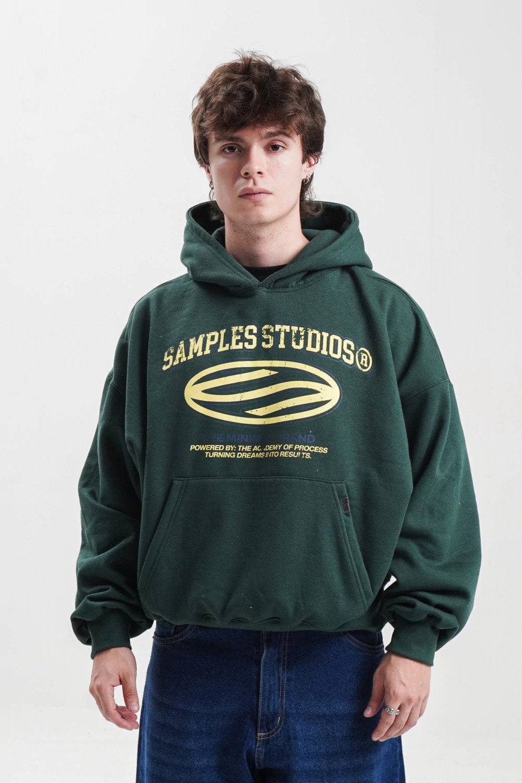 Buzo boxy de frisa premium con puños y cintura en ribb.