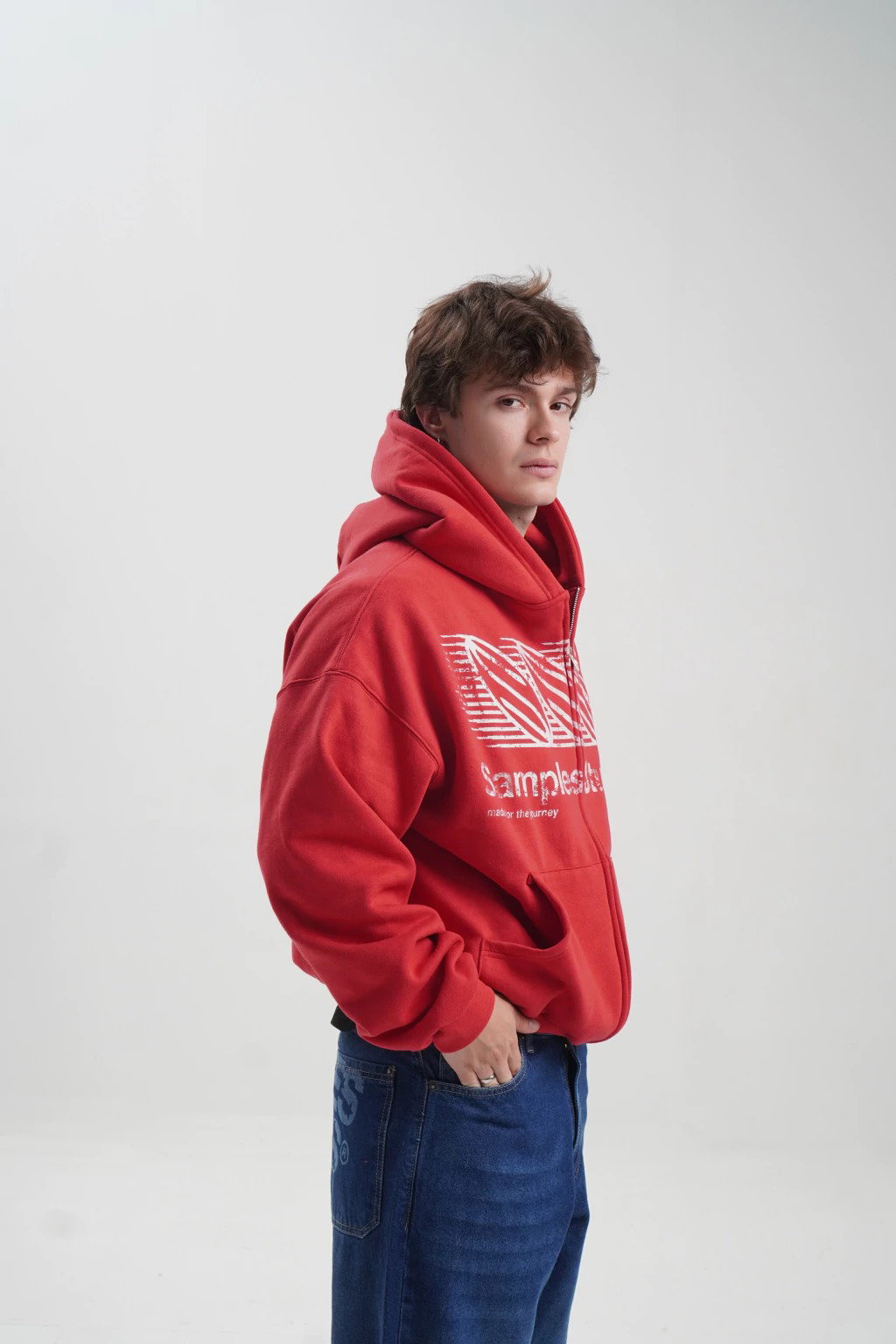 Campera zip de frisa corte boxy. Estampa en frente en serigrafia al agua de alta calidad.