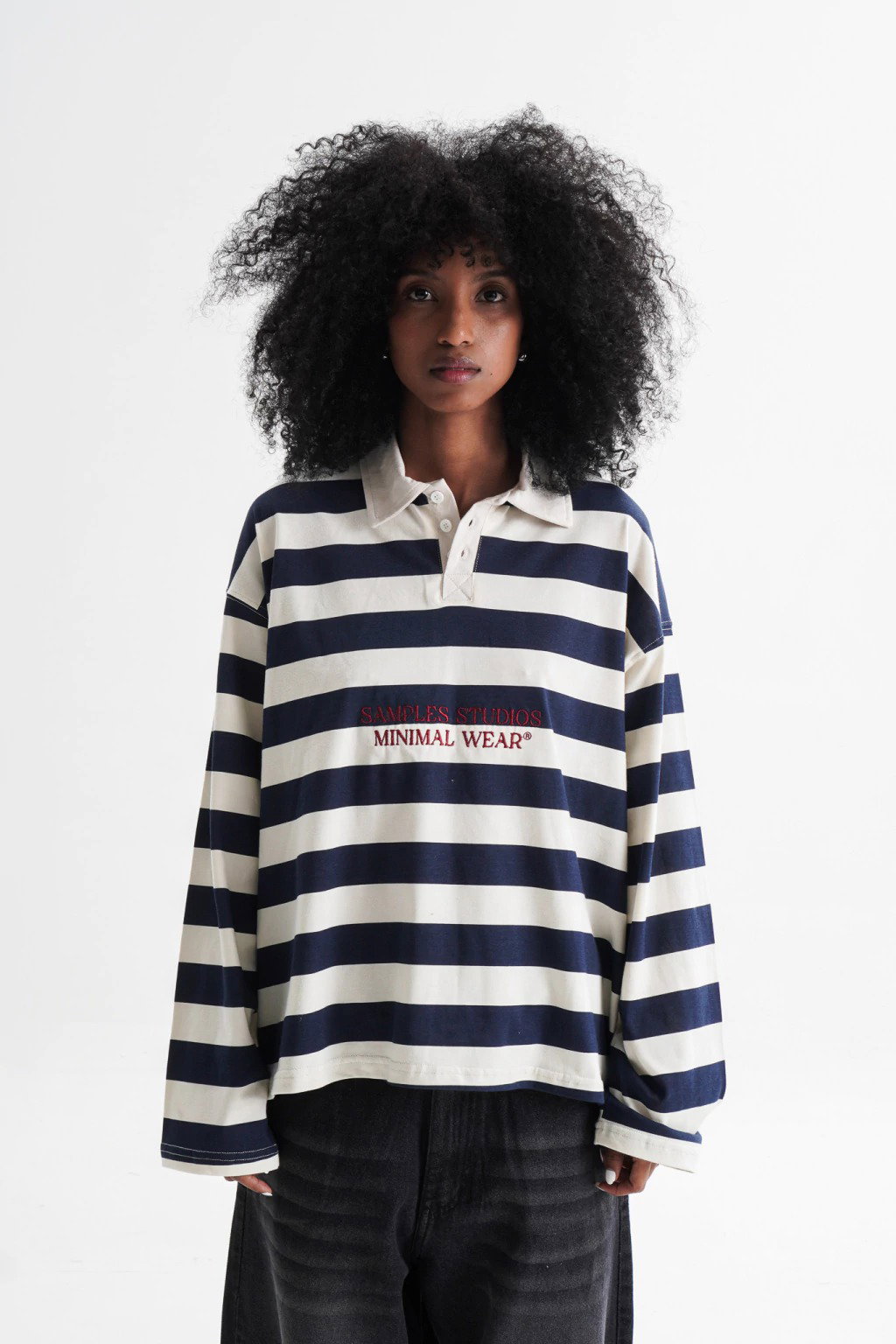 Detalle bordado en frente, corte oversize.