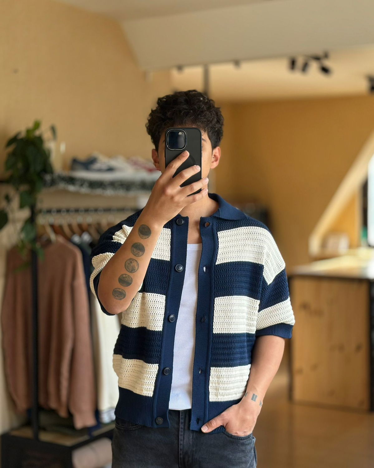 Camisa de algodón calado con tramado. Bordado a tono en espalda.