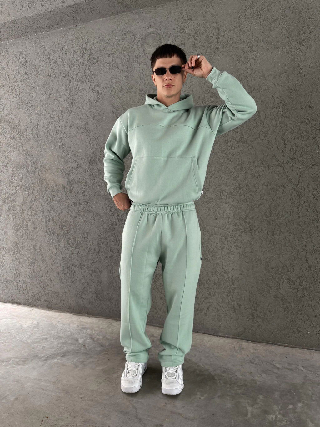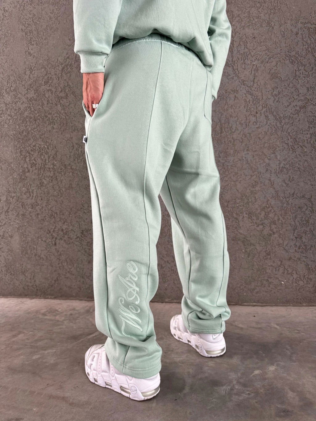 Jogging de algodón frisado con bordado a tono. Corte mom.