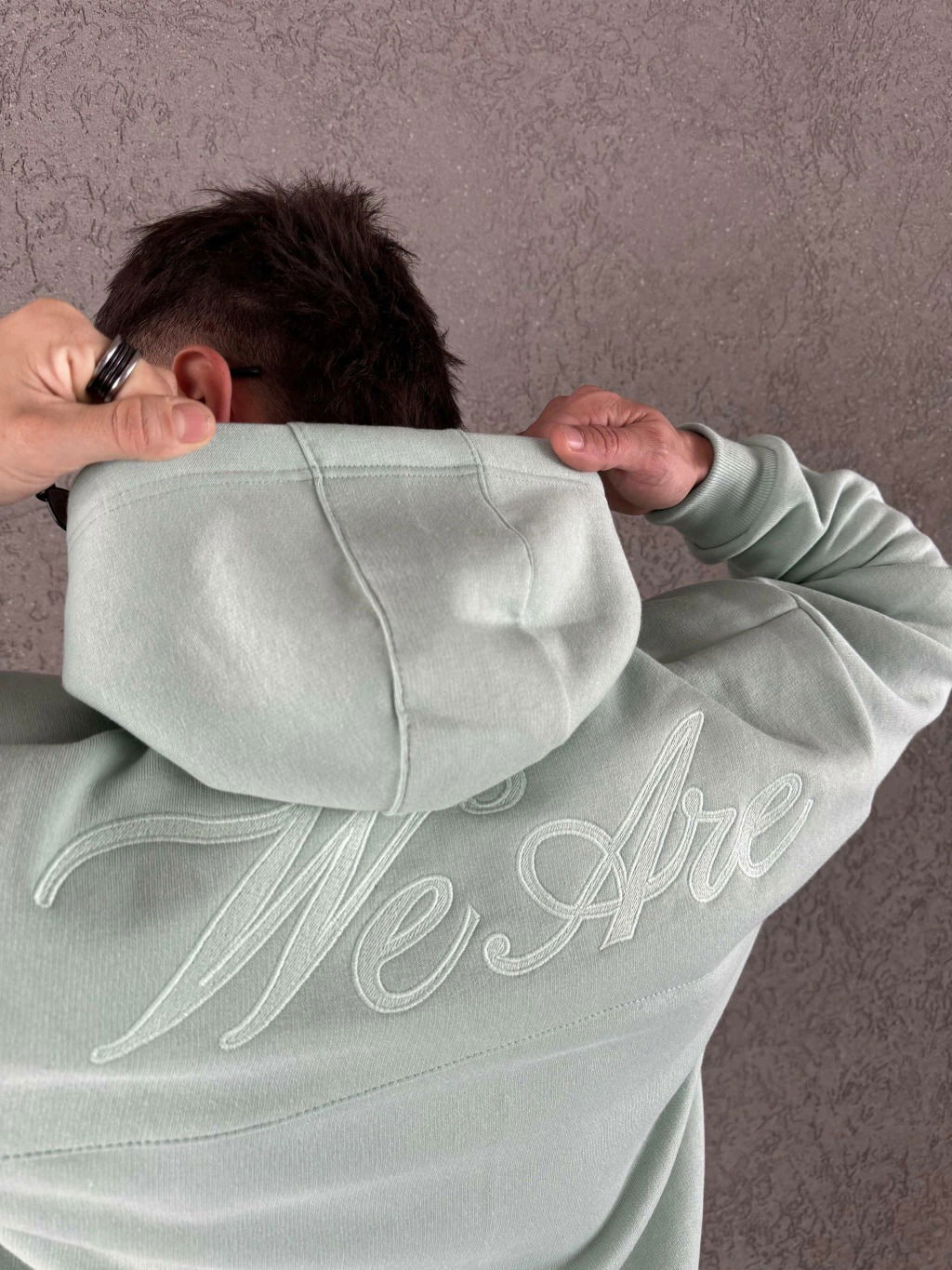 Buzo de algodón frisado con bordado a tono en espalda, corte boxy.