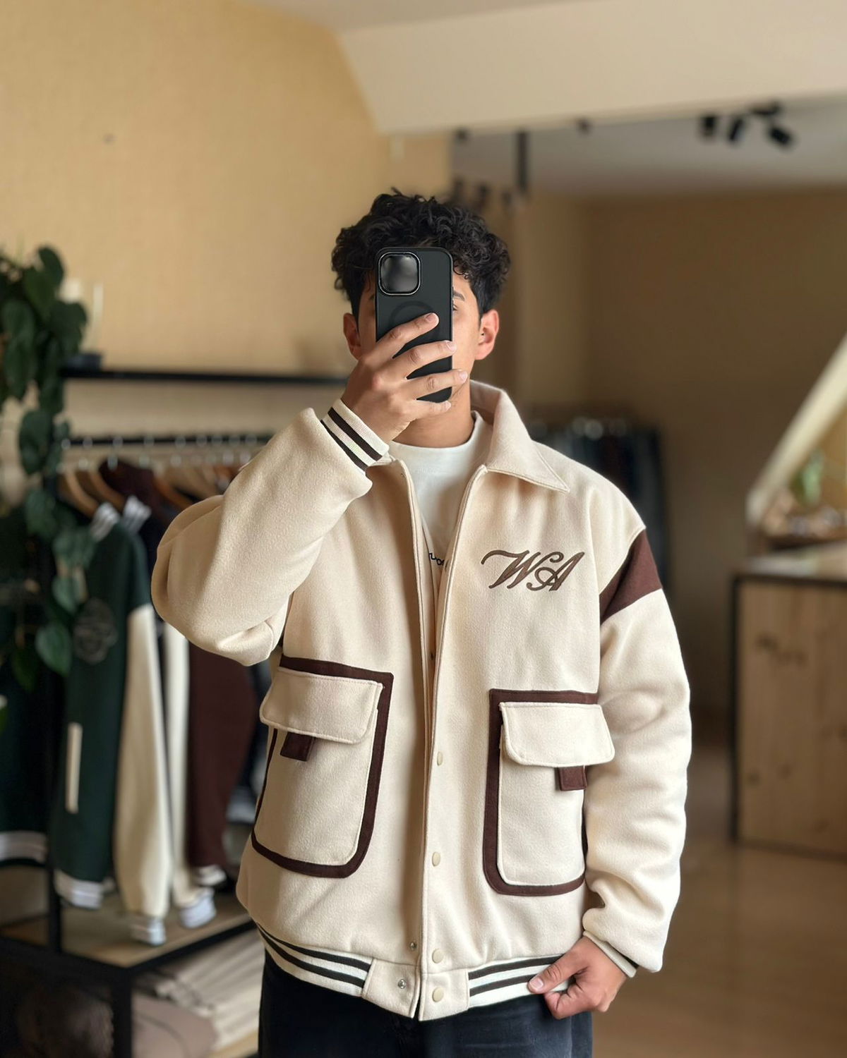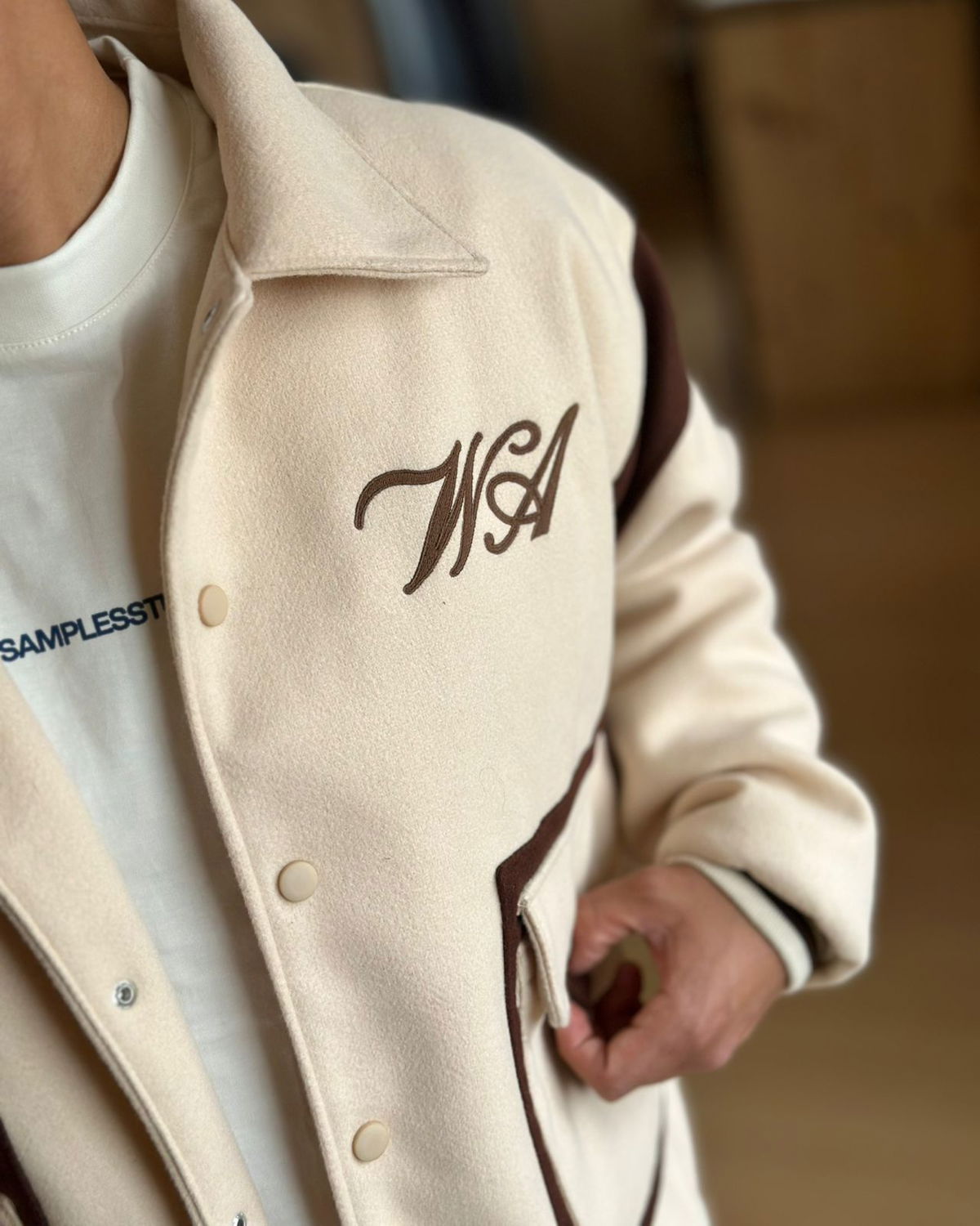 Campera universitaria de paño importado con matelasse y forrado interno.