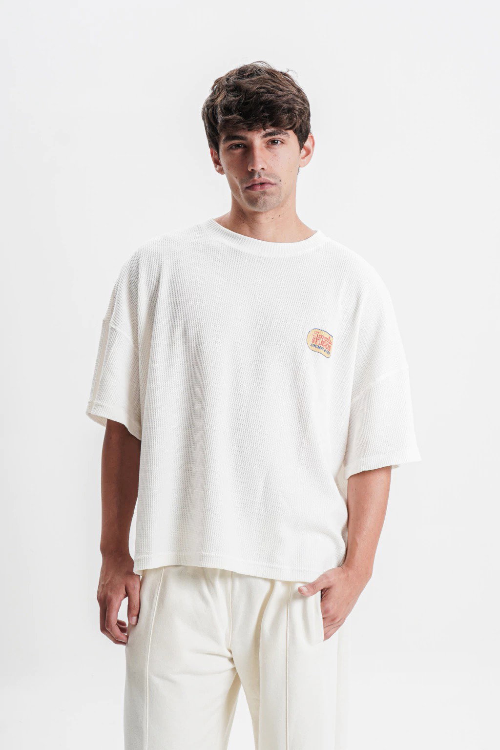 Remera unisex confeccionada en tela waffle. Estampa en frente y espalda en serigrafía de alta densidad, corte boxy.