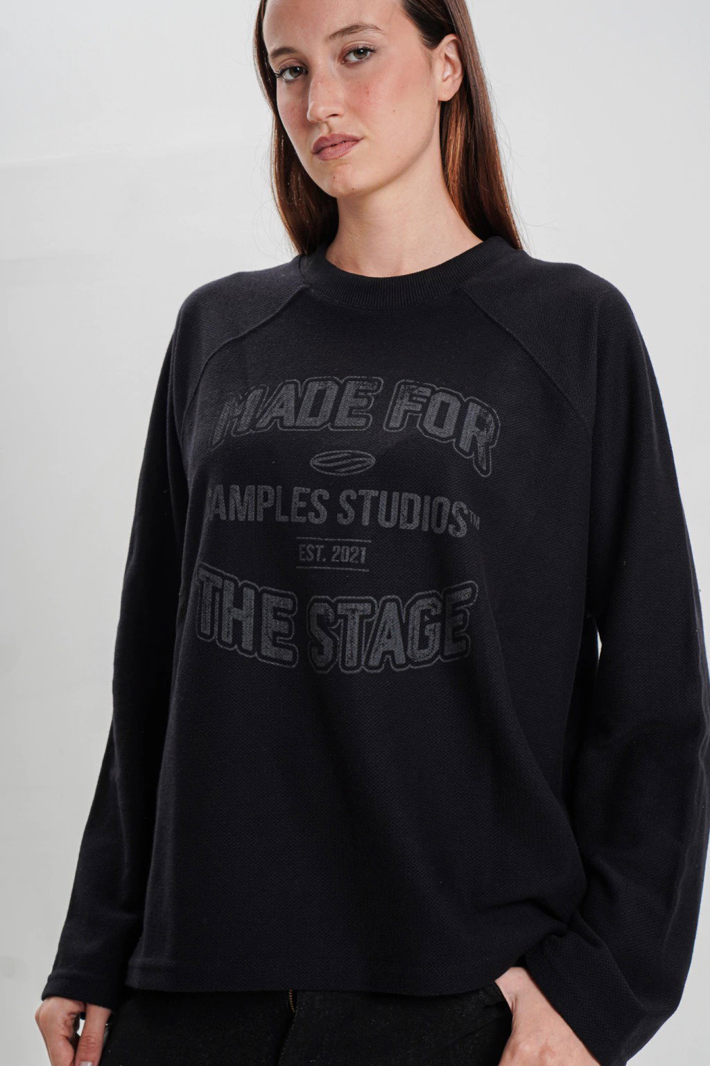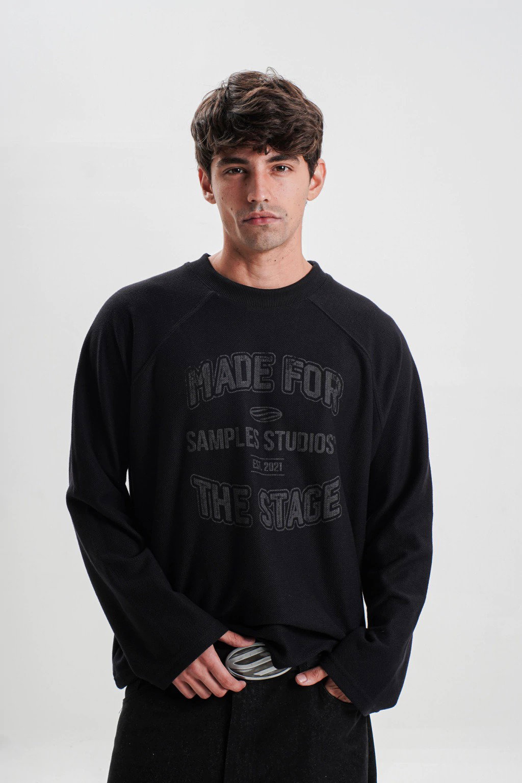 Remera manga larga de algodón tejido super pesado. Estampado en frente y espalda en serigrafia de alta densidad. Corte boxy.