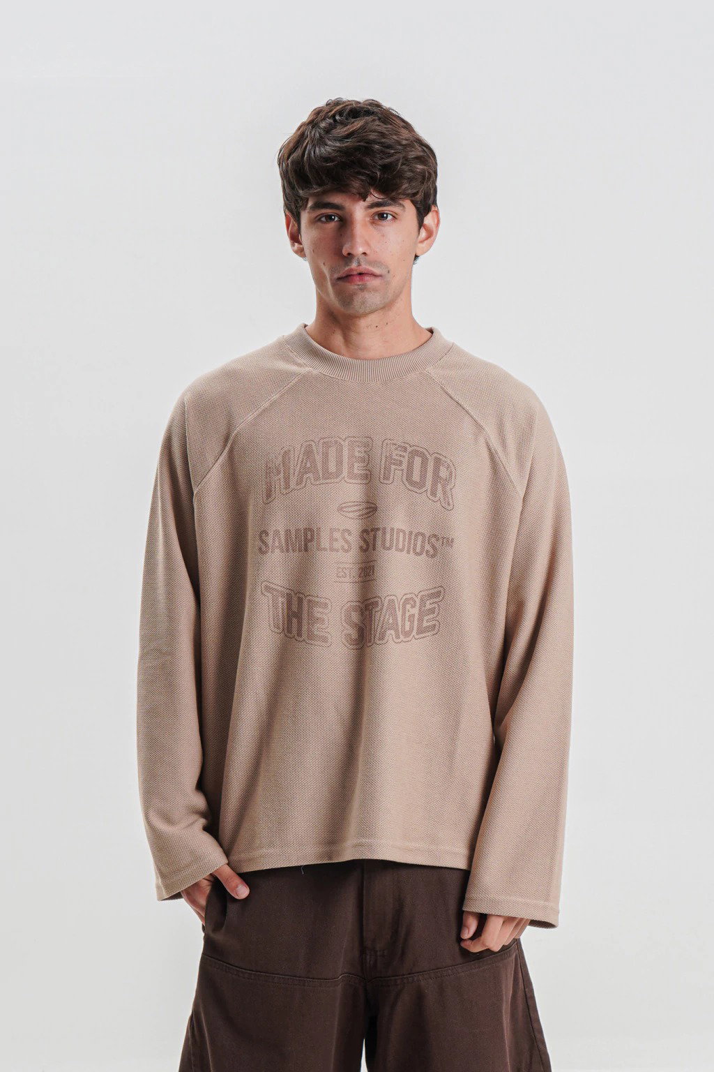 Remera manga larga de algodón tejido super pesado. Estampado en frente y espalda en serigrafia de alta densidad. Corte boxy.